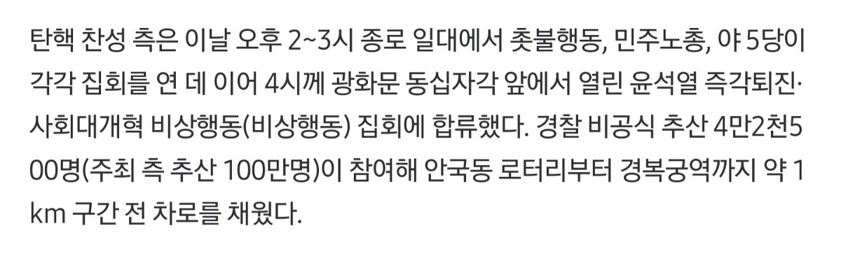 탄핵 찬성 집회 주최 측 추산 100만명 (2025-03-15) 차례 숨기기 탄핵 찬성 집회 주최 측 추산 100만명 (2025-03-15) 관련 태국 MITH 10주년 광고자영업 5년차 느끼는 실제 자영업400kg 무대장치에 짓눌려 사지마비된 성악가 근황AI에 의해 1순위로 멸망 중이라는 직업군 = 통역사이재명 대통령 ‘마약수사 외압 의혹’에 ‘성역 없이 엄정 수사’ (백해룡 파견) Post Views: 400관련 태그:탄핵 찬성탄핵 찬성 집회탄핵 찬성 집회 주최 측 추산 100만명탄핵 찬성 집회 주최 측 추산 100만명 (2025-03-15)이전백종원 사과문 (2025-03-13)다음다문화 혼인 비율 비교 (2013 vs 2023)