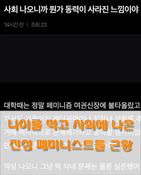나이를 먹고 사회에 나온 진성 페미니스트들 근황