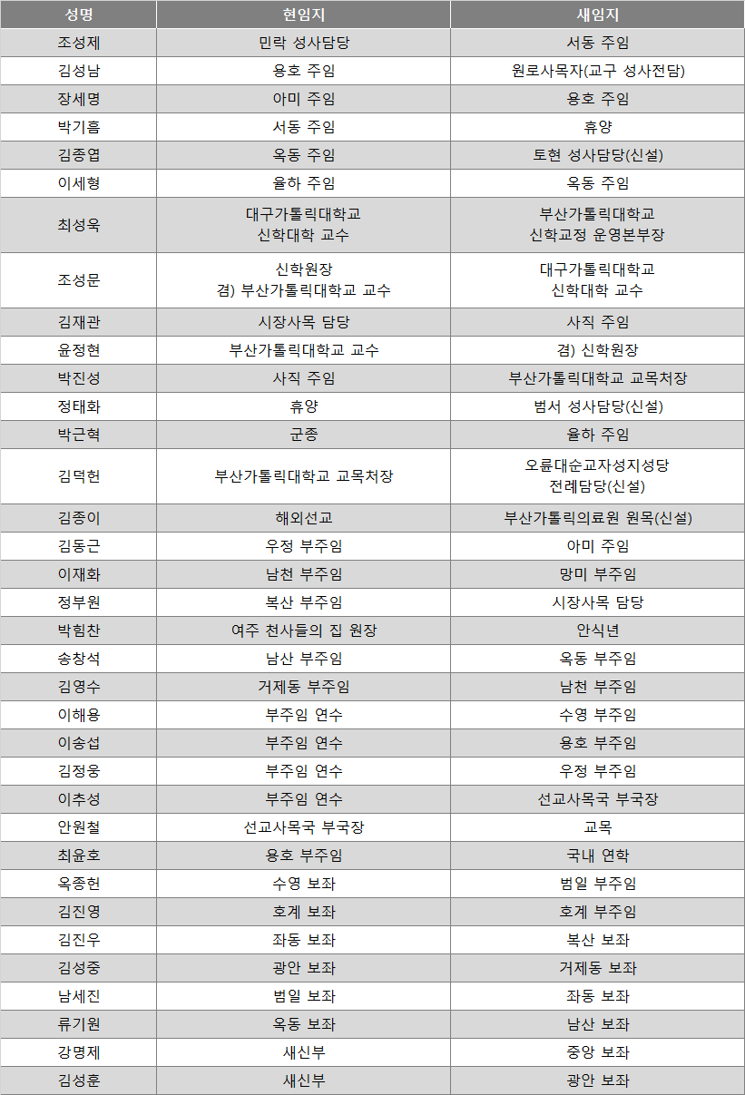 부산교구 2026년 1월 사제 정기 인사 차례 숨기기 부산교구 2026년 1월 사제 정기 인사 관련 부산교구 2025년 8월 사제 정기 인사안성기 배우 장례미사 및 영결식 사진 모음부산교구 2026년 1월 사제 정기 인사VICTORIA’S SECRET PINK 화보 찍은 트와이스 멤버들신세경이 업신여겼던 배우의 리즈시절 외모 (feat. 정보석)국민배우 안성기의 다양한 얼굴들 (1960~2022) Post Views: 16관련 태그:부산교구 2026년 1월 사제 정기 인사이전VICTORIA’S SECRET PINK 화보 찍은 트와이스 멤버들다음안성기 배우 장례미사 및 영결식 사진 모음