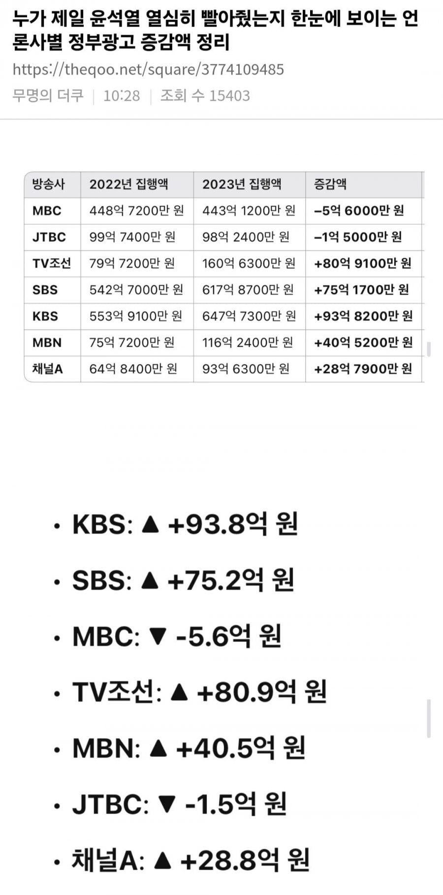 윤석열 정권 언론광고 증감액 차례 숨기기 윤석열 정권 언론광고 증감액 관련 대통령 윤석열 파면 선고문 전문 (2024-04-04 11:22)미성년자 음주 및 무전취식 정상화인플루언서 위험성 – 파자마 맨 – 팬 존슨 웬짱구 그림체로 그린 원피스 칠무해2026학년도 대학수학능력시험 국어영역 문제지 답지 (pdf 포함)커뮤에서 떠들썩한 남편 & 아내 조건 정리 Post Views: 429관련 태그:언론광고 증감액윤석열 언론광고 증감액윤석열 정권 언론광고 증감액이전2030여성들과 4050세대를 갈라치기하려는 수법에 넘어가면 안 되는 이유다음3대 특검 요약 (2025-06-05 – 채상병 내란 김건희 특검)
