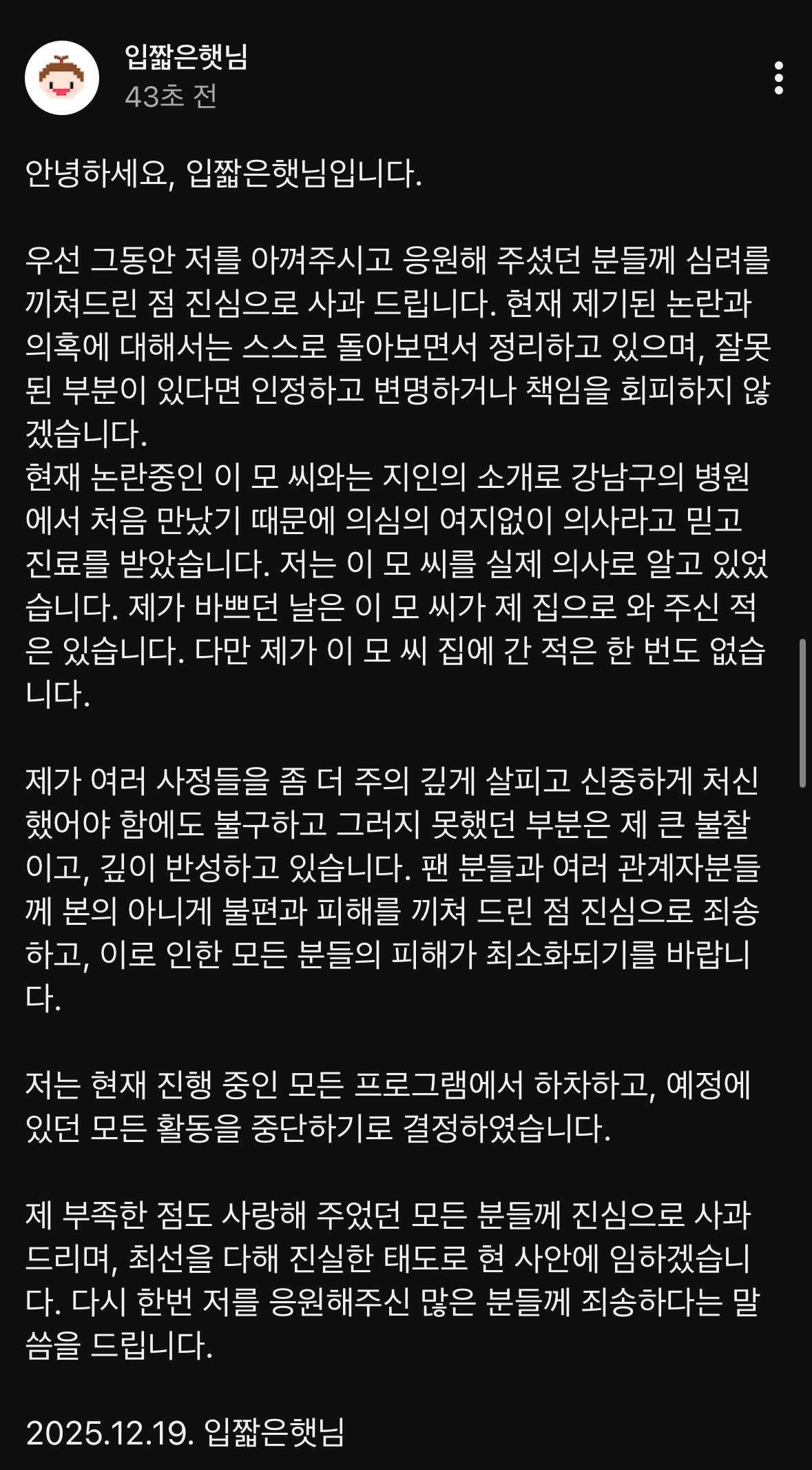 Home » 입짧은햇님 유튜브 커뮤니티 글 업로드 (주사이모)