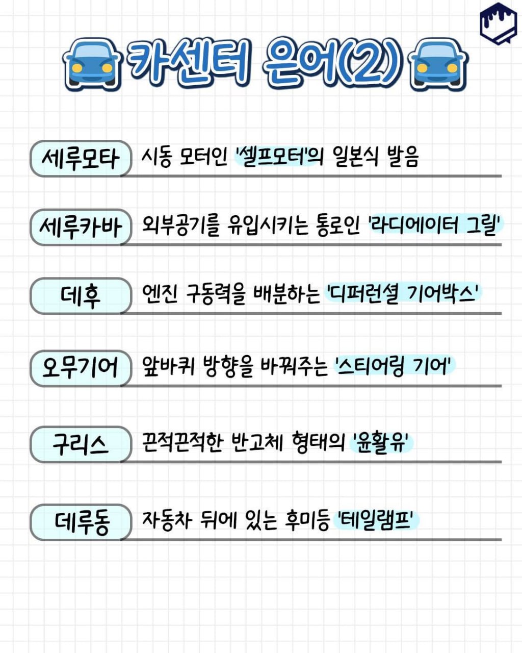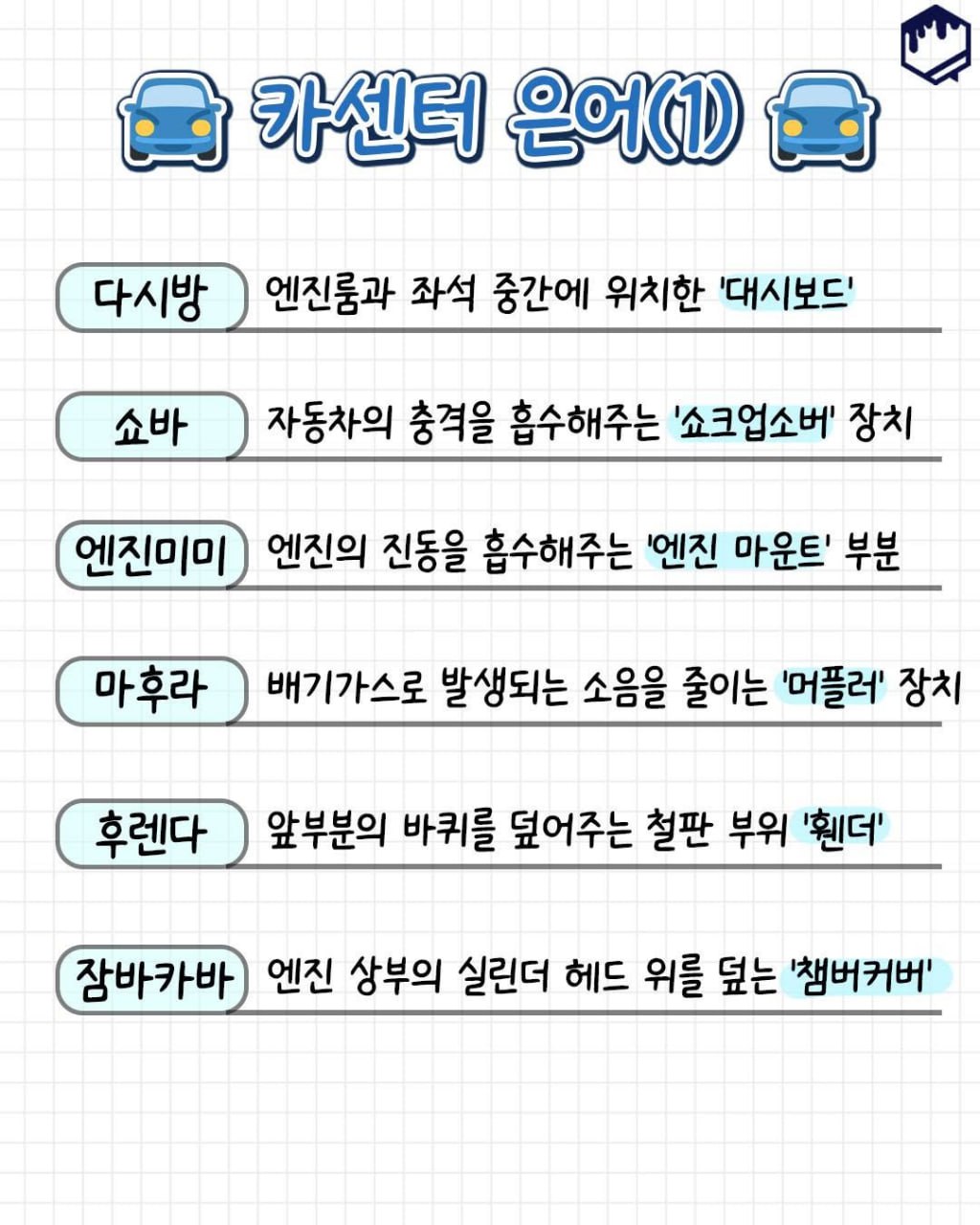(자동차 기초상식) 용어 및 카센터 은어 정리 차례 숨기기 (자동차 기초상식) 용어 및 카센터 은어 정리 관련 (자동차 기초상식) 명칭 정리(자동차 기초상식) 용어 및 카센터 은어 정리(자동차 기초상식) 명칭 정리청소년의 고민 상담 대상 3위는 인공지능실시간 나락가는 원자재 (금 은 구리 2026-01-31)중국의 ai 항복 선언 Post Views: 28관련 태그:(자동차 기초상식) 용어 및 카센터 은어 정리자동차 기초상식자동차 용어카센터 은어이전(자동차 기초상식) 명칭 정리