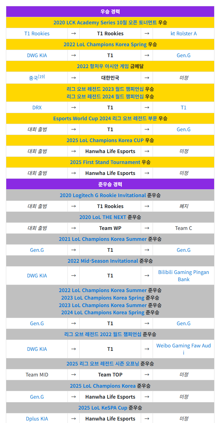 역쮀탑: 역체탑과 쮀스를 합친 말로 2024 월즈를 우승하며 역대 탑 중 1위나 다름없는 커리어를 쌓아 역체탑의 자리를 공고히한 제우스를 표현한 별명이다.