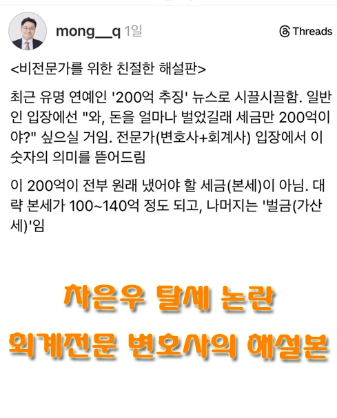 차은우 탈세 논란 회계전문 변호사의 해설본